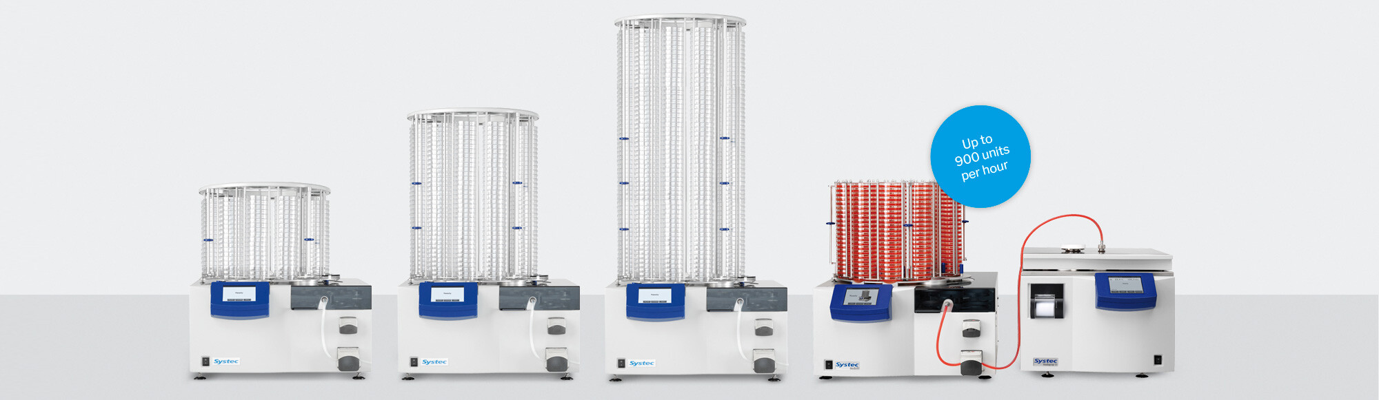 易于堆疊—堆疊的轉(zhuǎn)盤可輕松地從 Systec 分裝機上移除